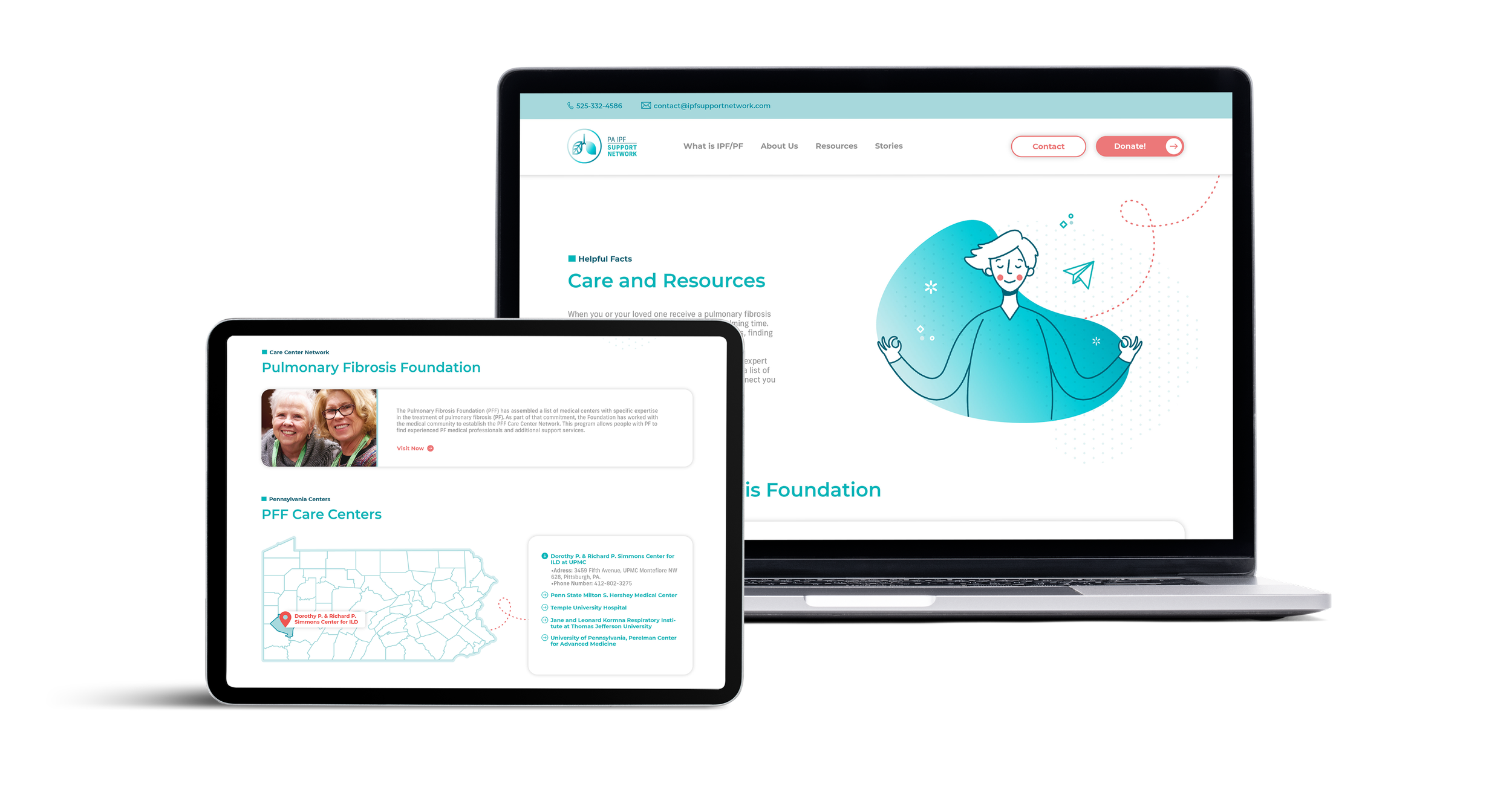 A clear introduction to PA IPF’s mission and an inviting call-to-action (CTA) to explore the site.